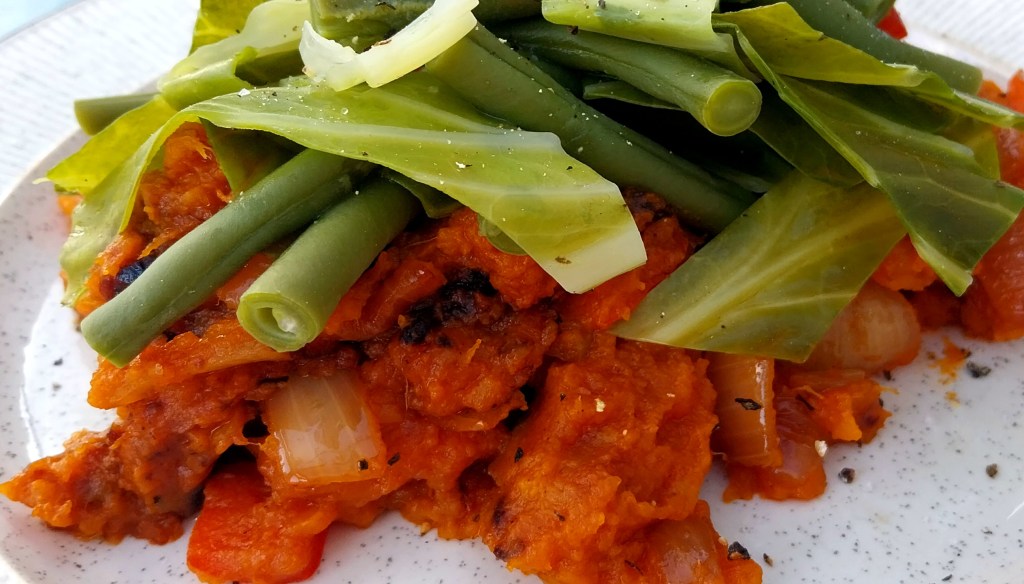 Lots of scope here – substitute other root veg like potatoes or celeriac, or other types of squash, and vary the proportions between them if you wish, as long as you have 1 large roasting pan’s worth of it all.