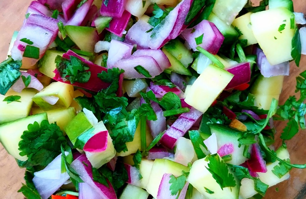 We were treated to a delicious lunch recently, prepared by our good friend Eva, an excellent cook specialising in Austrian cuisine. Home-made dumplings, or Semmelknödel, were served as an accompaniment to a tender roast duck breast, with roast vegetables, braised red cabbage and greens. You can see my filled plate in the main photo at the top of the post.