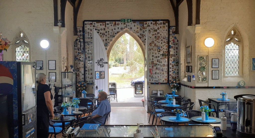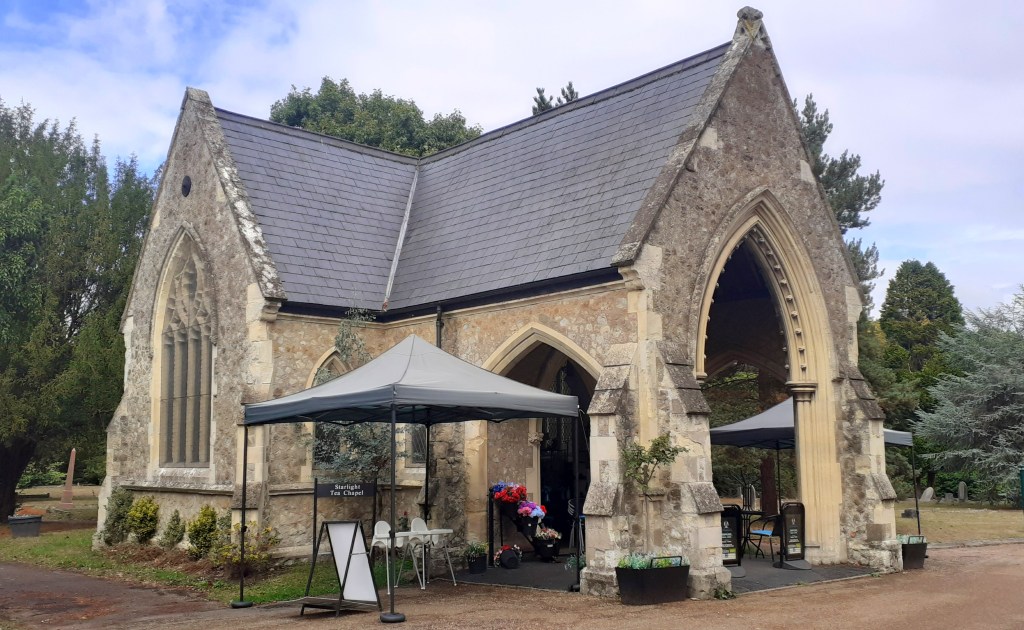 The Tea Chapel is inside the grounds of the cemetery and crematorium, although you will not find it signposted from the road. Built in 1855, it served for many years itself as a venue for funeral services, but was then decommissioned when the nearby crematorium opened. For a few years, it was effectively a store for garden tools, before being leased out as a tea room.