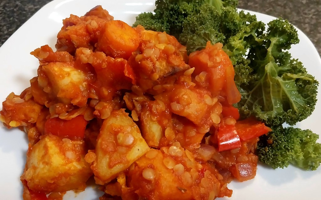 Swap in an̈y leftover veg you may have that is good for roasting: parsnip, carrot, celeriac, green or yellow pepper. Chop up a few celery stalks and add to soften in the tomato sauce. Try grating Stilton over to give another taste twist.
