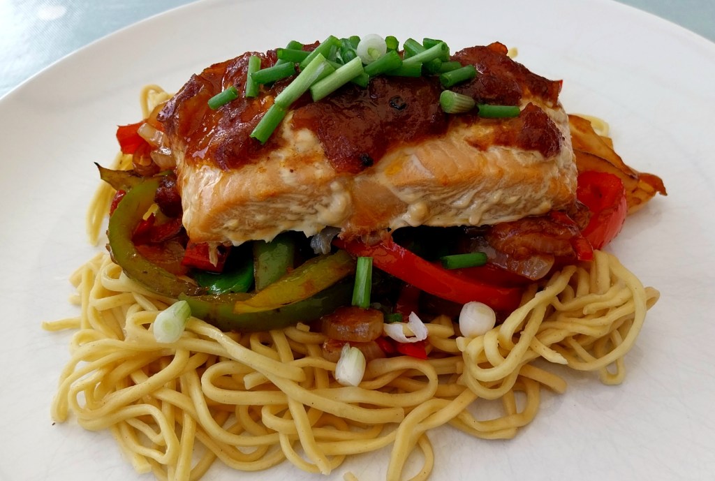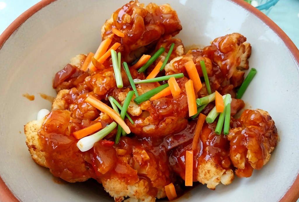 - When the roasting veg have had their 30 mins, remove the tray from the oven and scrape them into the wok. The veg should be softened and a little charred at the edges. Stir so all the veg is coated, then serve. I served mine with steamed fresh kale, as shown in my photo at the top of the post.