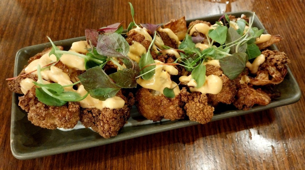 Naturally, I just had to check out some of the food on offer. Settling at Spanish-influenced restaurant Olé, we shared this tapas dish of crispy roasted cauliflower florets with a chilli mayo dressing.