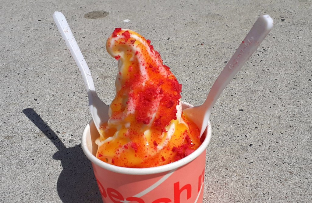 - Lay a line of chicken pieces on top of the rice, then follow with the carrot, cucumber, scallions, coriander and pepper. Use a little judgment here – you want the soldier to be well-filled but not overstacked.
