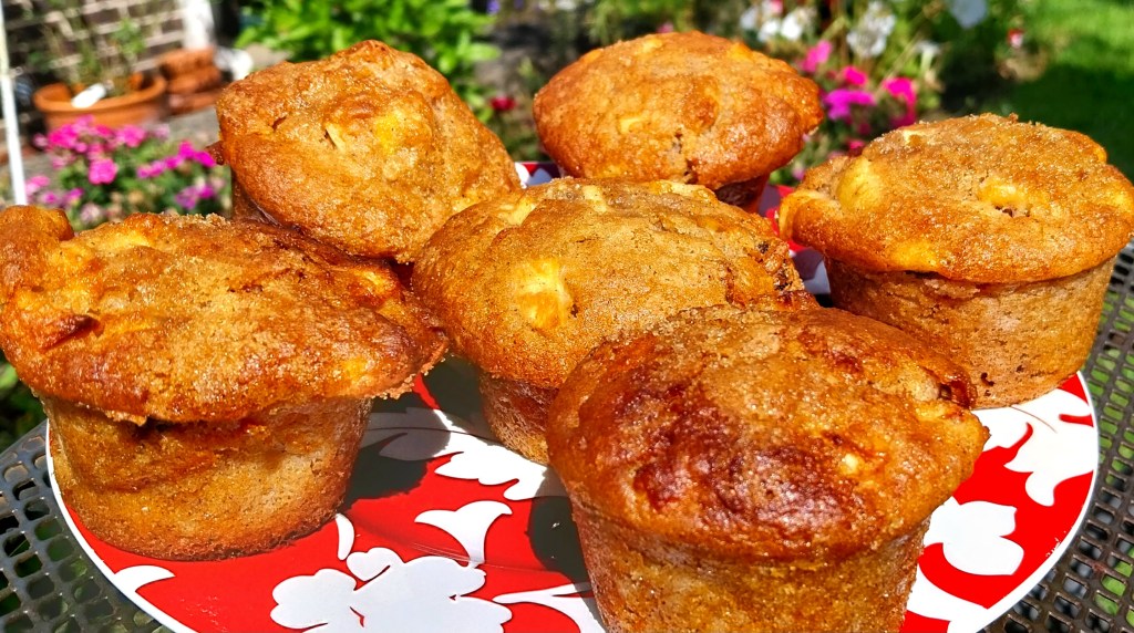 Basically, the rule here is that if it might have gone in your Christmas Cake, and is sitting left over in the cupboard, then it’s good enough for the muffins! Swap in raisins for some of the currants or sultanas, for example. Chop up some nuts and add them in. I didn’t go so far as to feed in a teaspoon of brandy but, hey, why not try it? If mixed spice is all you have, then use it in place of the cinnamon and nutmeg.