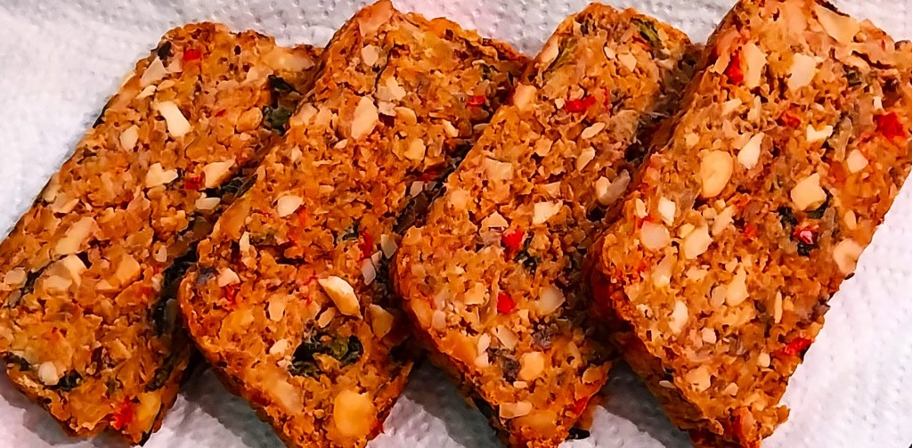 - Remove and set aside for 10 – 15 mins before inverting onto a chopping board. The nut loaf should ease out of the upturned dish, and look something like my main photo at the top of the post.