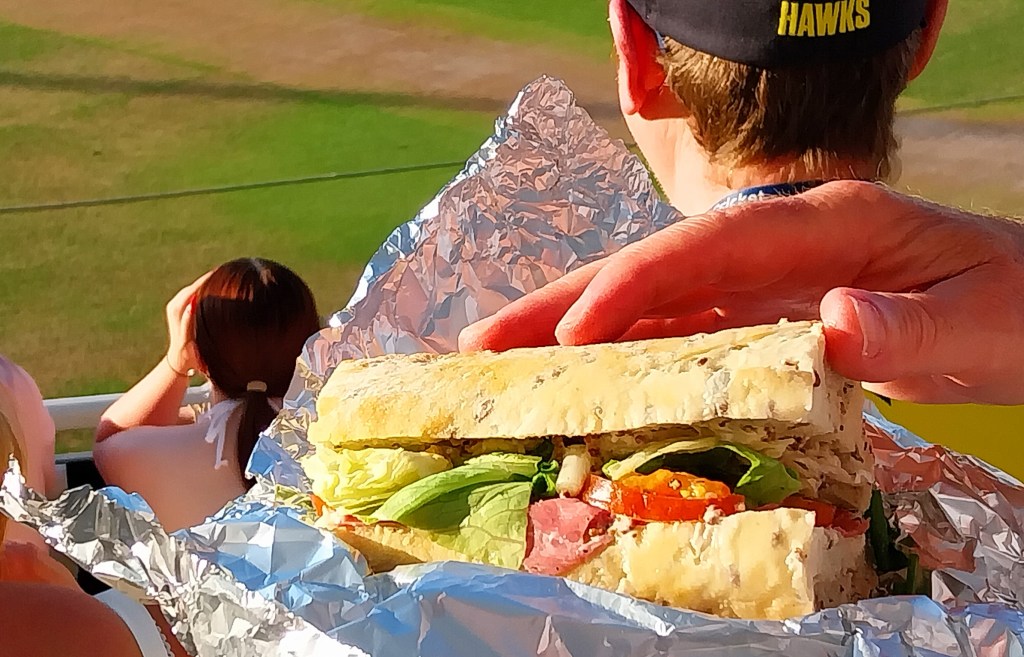 My most recent visit to the T20 Blast was to see my local team, Hampshire Hawks, play the Essex Eagles. With thoughts of baseball in my mind, I decided to make and take in my own deluxe sandwich, influenced by some of the great varieties I have enjoyed in New York delis. Here’s how I made my Pastrami Blast.