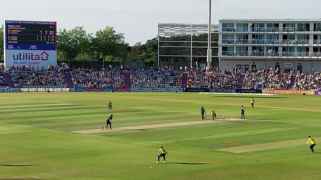 In the T20 Blast (as the competition is called), each team has only 20 overs (i.e. 120 bowls) and about 90 minutes in which to score runs. The solemnity and gentle patience of Test cricket (which is played out over 5 days) goes out the window, as the batsmen try to whack as many shots as possible over the boundaries and into the crowd. The whole affair is accompanied by lots of cheering, whooping, hollering, bursts of fire, pop music etc. You get the picture.